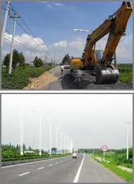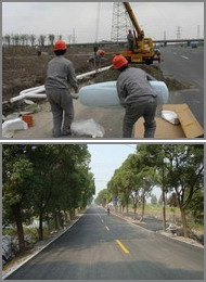 工程概述:吳江市公路改造項目包括震南新路1986m寬度7.8m和盛南線1842m寬度為7.0m。設計方案是用粒徑為9.3-13.2mm的碎石集料和橡膠瀝青攤鋪,進行1cm厚的應力吸收層施工。該項目以建設“平安公路”為目標,不斷提高農村公路的安全保障水平,為群眾出行提供安全可靠的通行環境。因地制宜加寬了部分道路,推進公交一體化,路、站、運同步發展。該項目完成后得到群眾一致的贊譽聲。